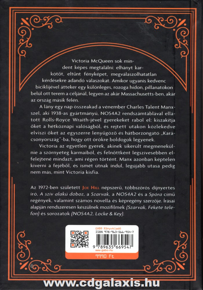 Victoria McQueen sok mindent képes megtalálni: elhányt karkötőt, eltűnt fényképet, megválaszolhatatlan kérdésekre adandó válaszokat. Amikor ugyanis kedvenc biciklijével átteker egy különleges, rozoga hídon, pillanatokon belül ott terem a céljánál, legyen az akár Massachusetts-ben, akár az ország másik felén. A lány egy nap összeakad a vénember Charles Talent Manxszel, aki 1938-as gyártmányú, NOS4A2 rendszámtáblával ellátott Rolls-Royce Lidércével gyerekeket rabol el: kiszakítja őket a hétköznapi valóságból, és rejtett utakon közlekedve elviszi őket az egyszerre lenyűgöző és hátborzongató Karácsonyország-ba, hogy ott örökre boldogok legyenek. Victoria az egyetlen gyerek, akinek sikerült megmenekülnie a szörnyeteg karmaiból, és felnőttként legszívesebben elfelejtené mindazt, ami régen történt. Manx azonban képtelen kiverni a fejéből, és ismét útnak indul, legújabb utasa pedig nem más, mint Victoria kisfia.