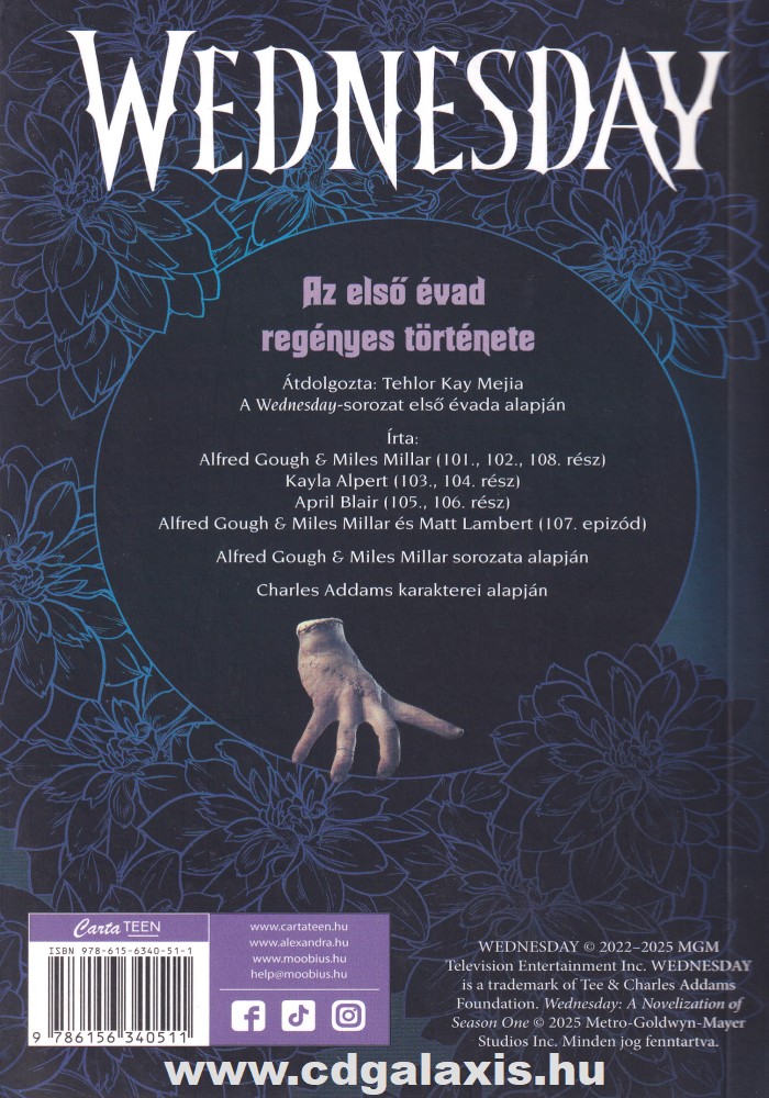 WEDNESDAY ADDAMS, a Nevermore Akadémia elsőéves diákja egyszerre próbálja irányítani felszínre törő látnoki képességét, megállítani a várost sokkoló borzalmas gyilkossági sorozatot, és megoldani a szüleit huszonöt éve kísértő rejtélyt - mindezt úgy, hogy közben újdonsült kapcsolatai útvesztőjében kell eligazodnia. Nem sokkal a Nevermore Akadémiára való megérkezése után Wednesday azzal szembesül, hogy egy rém terrorizálja Jericho városát. Ahhoz, hogy megmentse az iskolát és osztálytársait a közvetlen veszélytől, olyan emberek között kell szövetségeseket találnia, akikben nem feltétlenül bízhat meg. Az idő fogytán. Vajon képes felfedni a szörny titkát… vagy ő maga is áldozattá válik? Éld át újra a Wednesday első évadának izgalmait és intrikáit ebben a csodálatos regényes változatban, amely híven követi a szellemes, száraz humorú, természetfeletti erővel átszőtt sorozat rejtélyes nyomozását. Merülj el Wednesday nevermore-i első évének borzongató és hiteles újramesélésében!