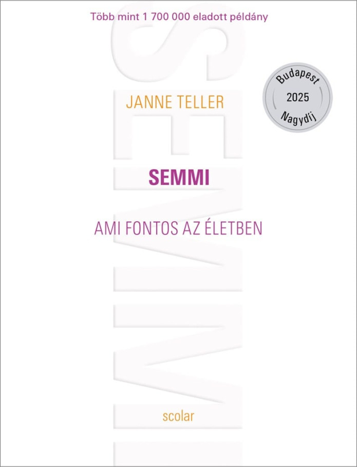 Janne Teller lesz 2025-ben a Budapesti Nemzetközi Könyvfesztivál díszvendége, melynek keretében Budapest Nagydíjjal tüntetik ki. Több, mint 40 000 eladott példány Magyarországon Janne Teller leghíresebb műve, a Semmi súlyos filozófiai, erkölcsi és generációs problémákat boncolgató mű. Hatása példátlan volt Dániában: eleinte betiltották az iskolákban, majd a megjelenést követő évben (2001) váratlanul elnyerte a dán Kulturális Minisztérium Gyermekkönyv-díját - azóta kötelező olvasmány. A botránykönyv nemzetközi bestseller lett 2008-ban megkapta a legjobb ifjúsági regénynek járó francia díjat (Le Prix Libbylit). Magyarországon évek óta hatalmas sikerrel játsszák a regényből készült ifjúsági előadást több színházban is. ,,Semminek sincs értelme, ezt régóta tudom. Ezért semmit sem érdemes csinálni. Erre most jöttem rá. Ezekkel a szavakkal hagyja el Pierre egy nap az osztálytermet. Osztálytársai erre elhatározzák, hogy nihilista társuknak bebizonyítják az ellenkezőjét. A terv szerint egy régi pajtában gyűjtenek össze mindent, aminek van értelme. De először csak egy fejetlen játékbaba, egy zsoltároskönyv, régi fényképek, elszáradt rózsaszirmok gyűlnek össze. Ezért a diákok azt találják ki, hogy mindenkinek valami számára különlegesen fontosat kell odaadnia. Olénak a bokszkesztyűjét, Hansnak az új versenybiciklijét, Husseinnek az imaszőnyegét, Frederiknek a dán zászlóját. Minél nagyobb az áldozat, annál nagyobb az értelme. Ami ártalmatlan játéknak indul, hamarosan kontrollálhatatlanná válik: Rikkének a copfjaitól, Gerdának a hörcsögétől kell megválnia. Kettejük még kegyetlenebb követelésekkel áll elő: Lis örökbefogadási oklevele, a kis Emil koporsója, egy kutyatetem és egy Jézus-szobor is az ,,értelem hegyén, a ,,Fontos Dolgok Halmán végzi. Akkor vadulnak csak igazán el az események, amikor Sofie-nak az ártatlanságát, a tehetségesen gitározó Jan-Johannak meg az ujját kell feláldoznia. Ekkor lépnek közbe a szülők és a rendőrség. Csak Pierre marad flegma. Kineveti a kamaszokat, akik ilyen áldozatokra képesek, csak hogy megtalálják az ,,értelmet. Az osztálytársak éjszaka brutálisan bosszulják meg közönyét.