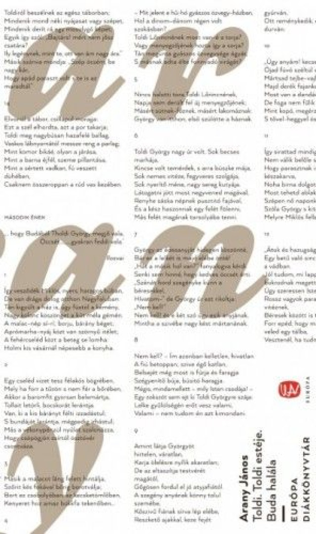 Arany János elbeszélő költeménye 1846-ban született a Kisfaludy Társaság pályázatára, amely kifejezetten ,,népies formájú költői beszélyt várt egy, a ,,nép ajkán élő történeti hősről. A mű végül elnyerte a pályadíjat, és a következő évben könyvként is megjelent, országos ismertséget hozva alkotójának. Főhőse Toldi Miklós, a paraszti sorból felemelkedő, kivételes erejű ifjú, akinek alakjában a népmondai hagyomány és a nemzeti eposz hőseszménye találkozik. A Toldi tizenkét énekben, népies hangütéssel idézi meg a 14. századi Magyarország légkörét és egy legendás hős felemelkedését Nagy Lajos király korában. A Toldi sikere és hatása a később trilógiává bővülő sorozatban teljesedett ki: a három mű (Toldi, Toldi estéje, Toldi szerelme) együtt rajzolja ki a hős teljes pályáját.