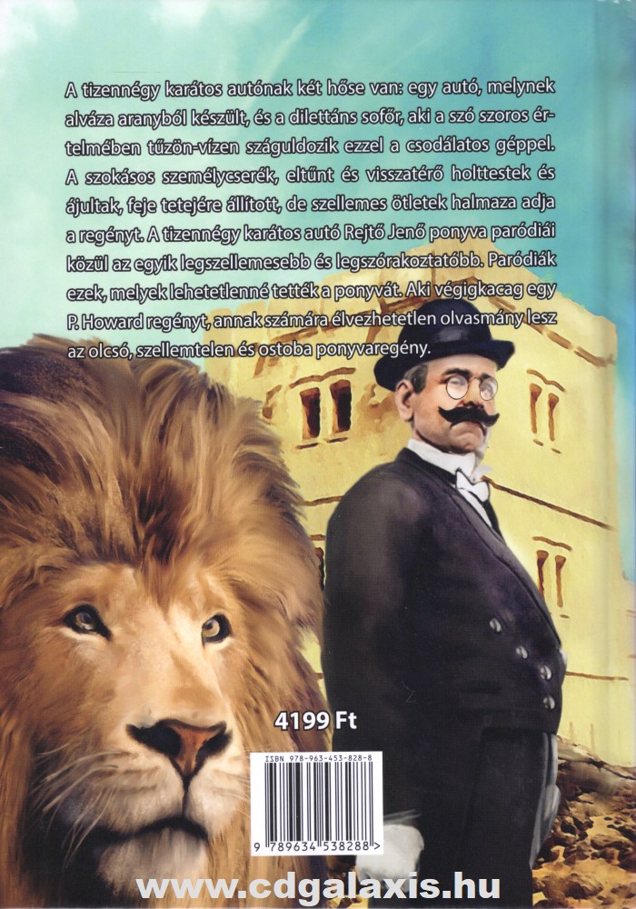 A tizennégy karátos autónak két hőse van: egy autó, melynek alváza aranyból készült, és a dilettáns sofőr, aki a szó szoros értelmében tűzön-vízen száguldozik ezzel a csodálatos géppel. A szokásos személycserék, eltűnt és visszatérő holttestek és ájultak, feje tetejére állított, de szellemes ötletek halmaza adja a regényt. A tizennégy karátos autó Rejtő Jenő ponyvaparódiái közül az egyik legszellemesebb és legszórakoztatóbb. Paródiák ezek, melyek lehetetlenné tették a ponyvát. Aki végigkacag egy P. Howard regényt, annak számára élvezhetetlen olvasmány lesz az olcsó, szellemtelen és ostoba ponyvaregény.