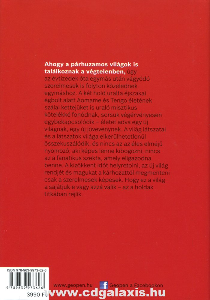 Ahogy a párhuzamos világok is találkoznak a végtelenben, úgy az évtizedek óta egymás után vágyódó szerelmesek is folyton közelednek egymáshoz. A két hold uralta éjszakai égbolt alatt Aomame és Tengo életének szálai kettejüket is uraló misztikus kötelékké fonódik, sorsuk végérvényesen egybekapcsolódik - életet adva egy új világnak, egy új jövevénynek. A világ látszatai és a látszatok világa elkerülhetetlenül összekuszálódik, és nincs az az éles elméjű nyomozó, aki képes lenne kibogozni, nincs az a fanatikus szekta, amely eligazodna benne. A kizökkent időt helyretolni, az új világ rendjét és magukat a kárhozattól megmenteni csak a szerelmesek képesek. Hogy ez a világ a sajátjuk-e vagy azzá válik - az a holdak titkában rejlik.
