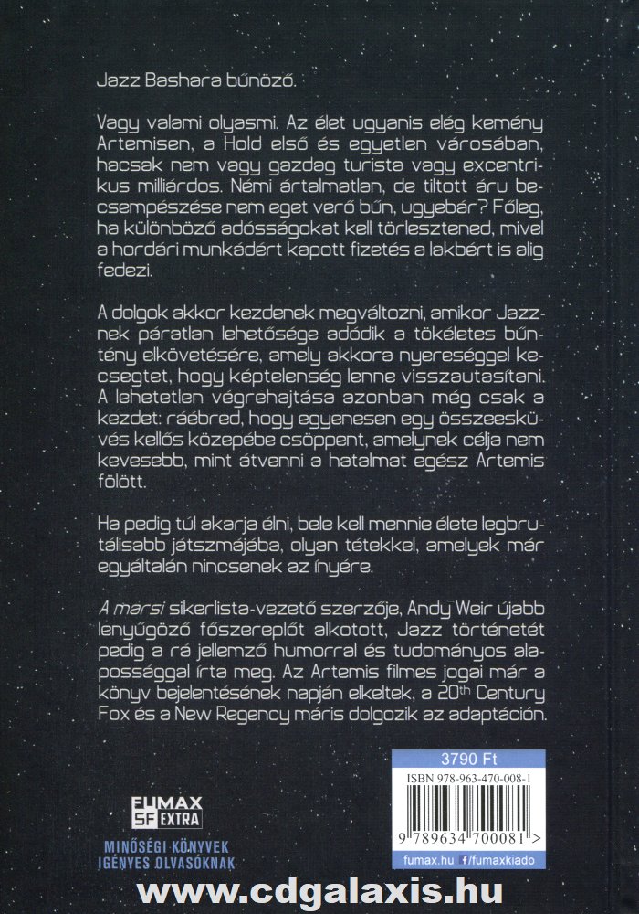 Vagy valami olyasmi. Az élet ugyanis elég kemény Artemisen, a Hold első és egyetlen városában, hacsak nem vagy gazdag turista vagy excentrikus milliárdos. Némi ártalmatlan, de tiltott áru becsempészése nem egetverő bűn, ugyebár? Főleg, ha különböző adósságokat kell törlesztened, mivel a hordári munkádért kapott fizetés a lakbért is alig fedezi.