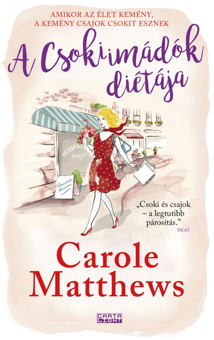 A Csokiimádók Klubjának négy tagja sürgős összejövetelt tart, és persze szokás szerint rengeteg csoki kerül terítékre. Lucy bízott benne, hogy jóképű főnökével, Aidennel már semmi nem választhatja el őket, de egy nap az álompasit egy másik nővel találja az ágyban… Vagy mégsem? Autumn új barátja még nem találkozott a lány szüleivel, és talán ez a szerencséje… Nadia férje megesküdött, hogy leszokik a szerencsejátékról, de a bizalmatlan asszony nyomozni kezd utána… Chantal romokban heverő házassága fölött pedig váratlanul kisüt a nap… Vagy mégsem? Egyvalami biztos: a lányoknak rengeteg csokoládéra lesz szüksége! Mindeközben persze Lucy szeretné, ha a derékbősége nem érné el egy karcsúbb vízilóét, mert ki tudja, nem kell-e hamarosan egy álomszép fehér selyemruhába bújnia… De úgy tűnik, egyelőre inkább csak a csoki fogy, ő nem. ,,Carole Matthews rajongói nem fognak csalódni ebben a megható és vicces folytatásban. Bella ,,Ízletes csemege az első laptól az utolsóig. Womans Own Carole Matthews az egyik legnépszerűbb angol romantikus szerző, aki sziporkázó humorával nemcsak a rajongók seregét kápráztatta el, hanem a kritikusok elismerését is kivívta. Regényeinek szinte bérelt helye van a legfontosabb bestsellerlistákon, különféle díjait összeszámolni is nehéz lenne. Carole tévéműsort is vezetett, és a rádióban is rendszeresen szerepel. Amikor éppen nem regényt ír vagy a rajongói leveleire válaszol Milton Keynes-i otthonában, akkor élvezettel fogyaszt csokoládét és utazgat szerte a világban. Lucy Lombard és a Csokiimádók Klubja többi tagjának fergeteges története folytatódik A Csokiimádók karácsonya című kötetben.