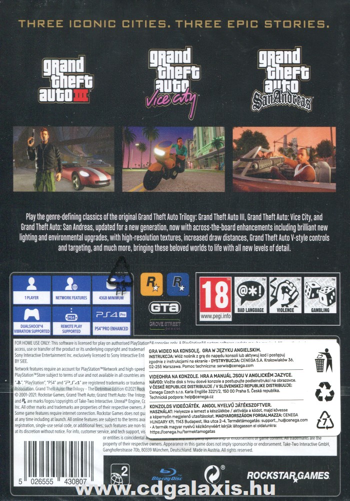 Playstation 4 Grand Theft Auto The Trilogy The Definitive Edition hátlap