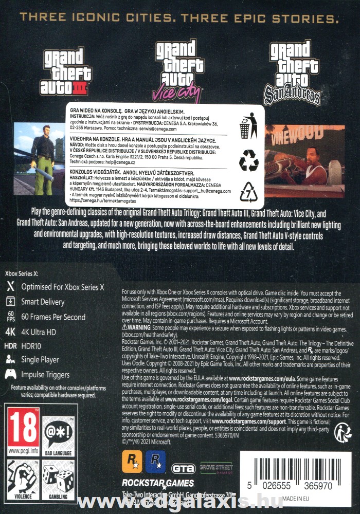 Xbox Series X, Xbox One Grand Theft Auto The Trilogy The Definitive Edition hátlap